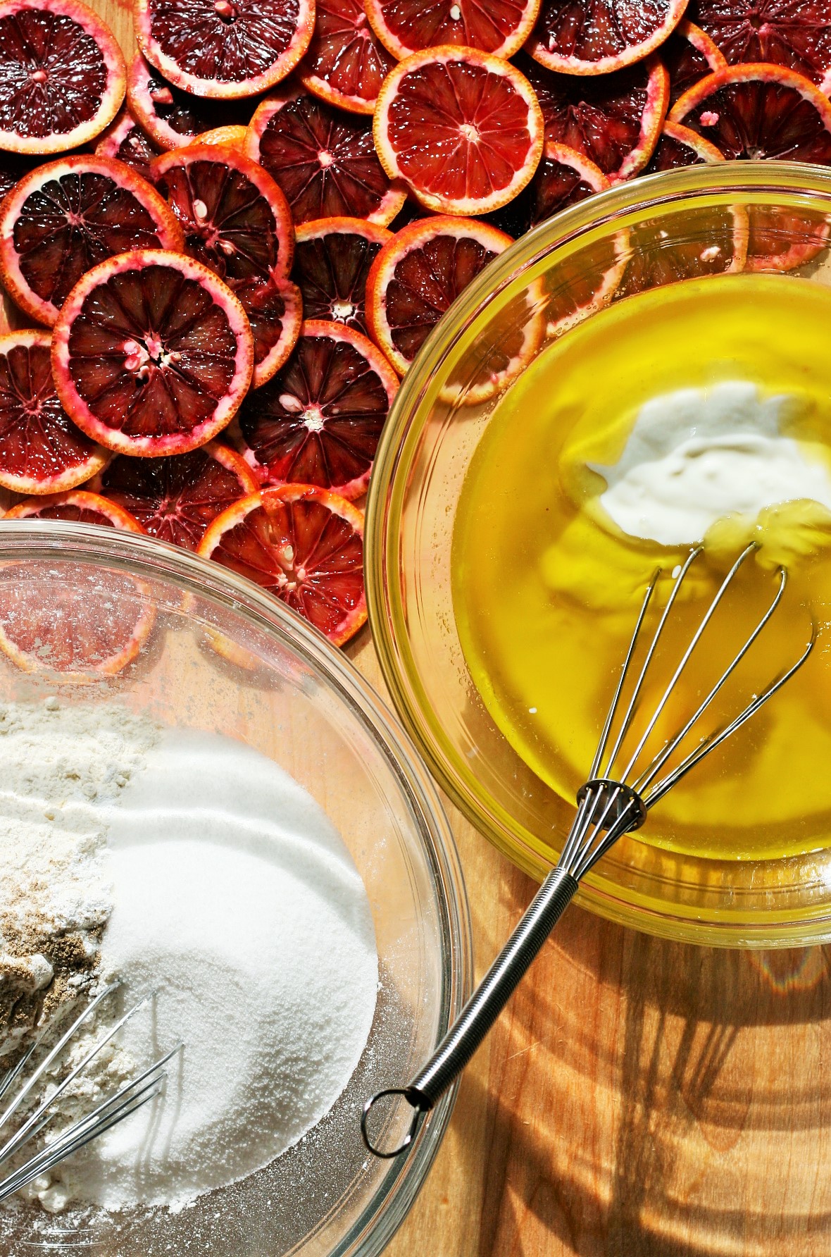 Fresh pressed olive oil, homemade yogurt, hand ground cardamom pods and oranges from our farm are the colors, scents, and tastes of my childhood. My family used what was abundant and in season and this combination of flavors were a delectable explosion on the palette and a warm, sweet balm to the soul. At it's heart, this cake honors my family's culinary history, while the modern candied blood orange addition signifies my mark on this tradition. The sweet, sour, tangy and unbelievably bright blood orange is bursting with juicy flavor that is reminiscent of an orange, tangerine and lemon, all they while drenched in its own crimson uniqueness. Cake is often treated as a vehicle for frosting. Not here. Not this bake. Not this cake. This Candied Blood Orange Olive Oil Yogurt Cake is one of the most deeply flavorful and gratifying cakes I have ever created. The fruity intense flavor of the extra virgin oil, with the tang of the yogurt and sweet sour bite of the blood orange is an incredible symphony when married together.