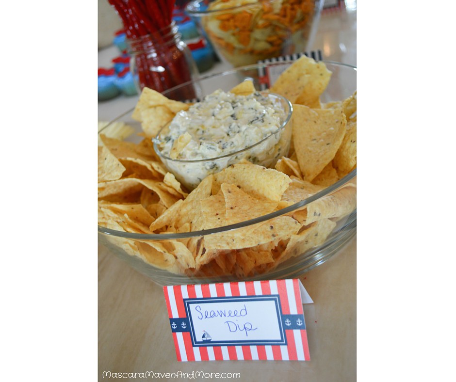 Remember those food tips above? Well, here are a few in action. (Another one not pictured: I labeled the meat and cheese tray “Shark Bait,” hehe.)