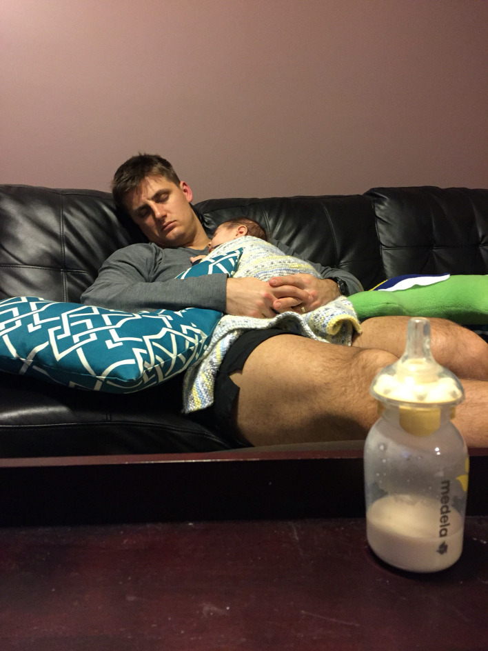 And since everyone posts photos of themselves breastfeeding, here is one of Zack having a wonderfully perfect nap with Lincoln after he fed him his bottle.