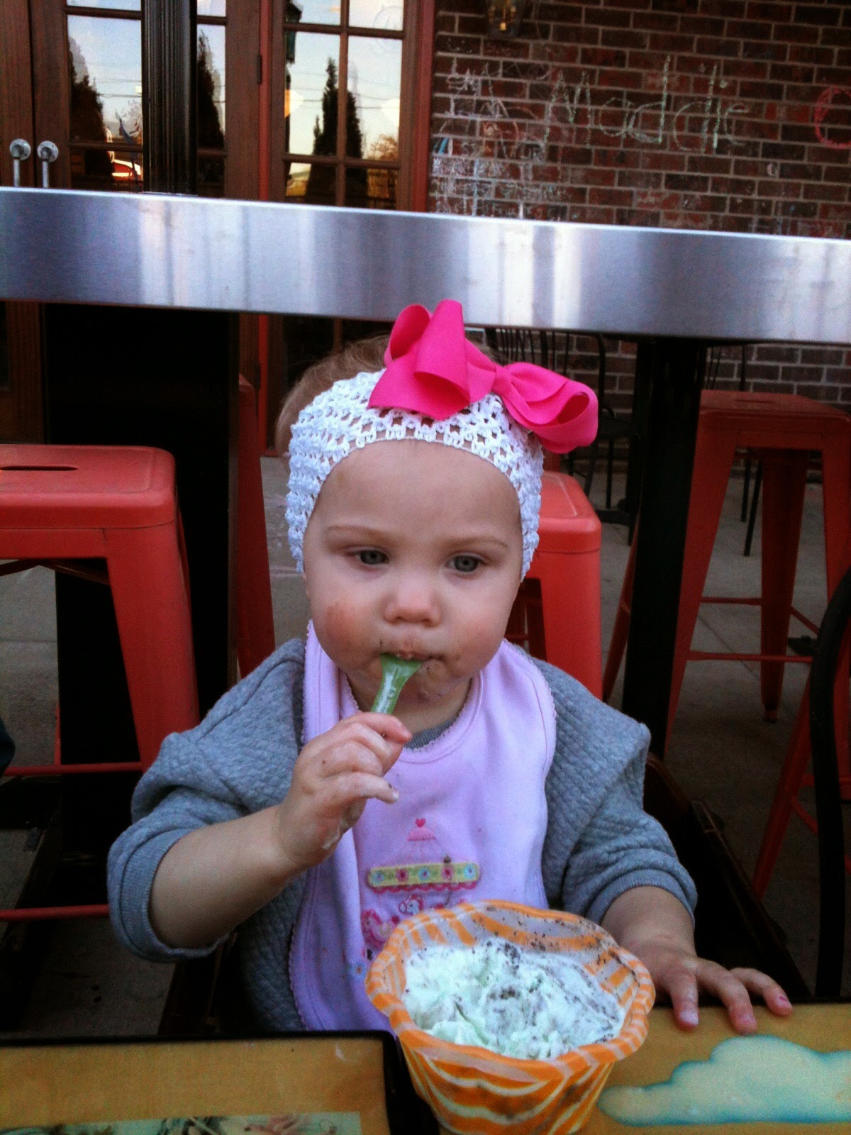 My mom caught eyes with me and smiled last night at dinner when I muttered "Don't say no when you can say yes, right?" with a shoulder shrug after my daughter ditched her spoon and tipped the ice cream bowl straight into her mouth. We were eating at a pizza joint outside, with family only, and I knew she'd be going straight in the tub when we got home. She made a mess, but it made her life. Though I had a massive (inconvenient for me) mess to clean up, her joy was written all over her face in the form of chocolate chunks in her hair and all over her teeth.