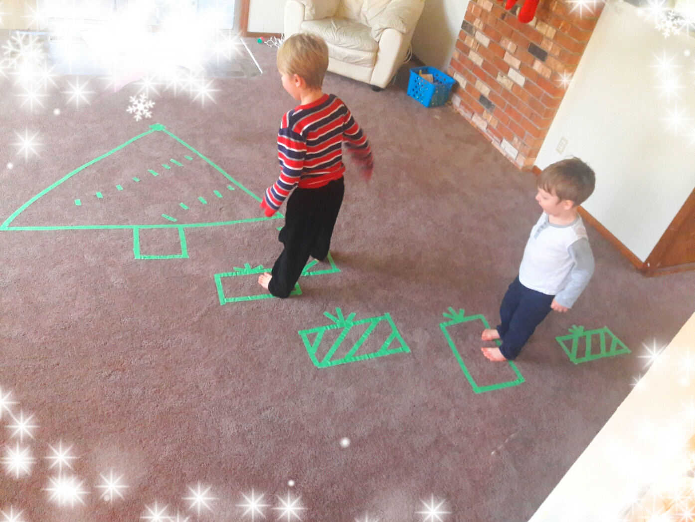 We also tried a Christmas themed “present hopscotch if you will!