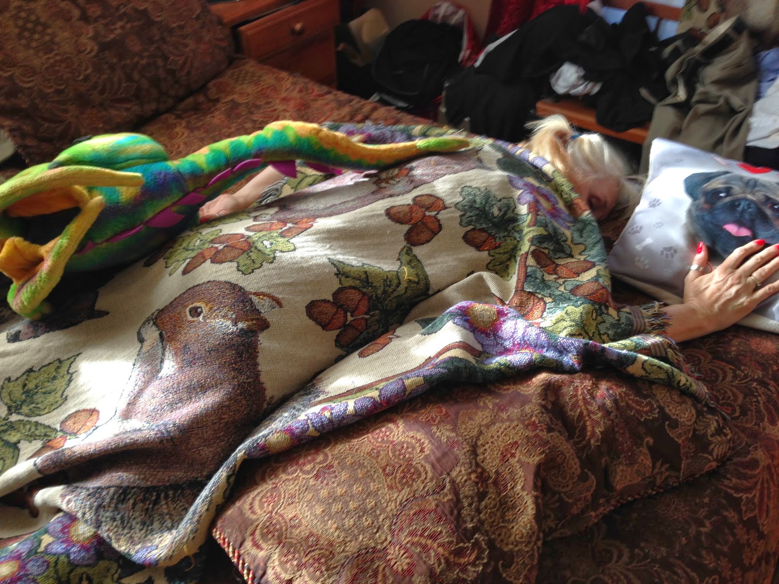 I love my quiet weekends. They give me license to indulge in one of my favorite pastimes: napping. When the lunch dishes are cleared and my schedule is free, I retire to my private little cave under a stack of blankets and pillows. Once I close my bedroom door, the family KNOWS not to disturb me. If my beauty rest is interrupted, they'll be dealing with a haggard troll…. and the consequences for waking me will be swift and painful.